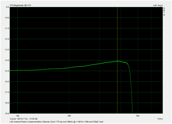 • FR at 3.84Vrms output and 100k+500pF load : 12Hz@-1.3 to 33kHz@+0.7dB