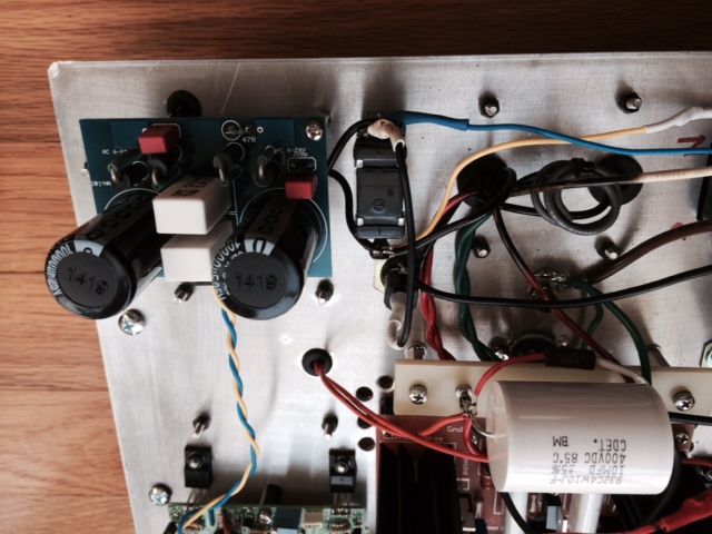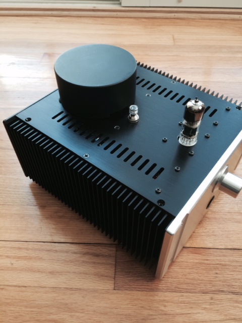 This is my implementation inspired by Ale Moglia’s 01A preamp Gen2 (http://www.bartola.co.uk/valves/dht-pre-amplifier/01a-preamp-gen2/). The plate gyrator is Ale’s design and it works like a charm. I want to thank Ale for his great dedication to bring this gyrator to high performance levels. I am using a Dynamicap 0.22uF in place of C1 and a 0.47uF Mundorf Supreme for C2. I also tried the FT3 0.22uF and like it better than the Supreme…I made the boards for smaller caps and couldn’t fit it in there.
