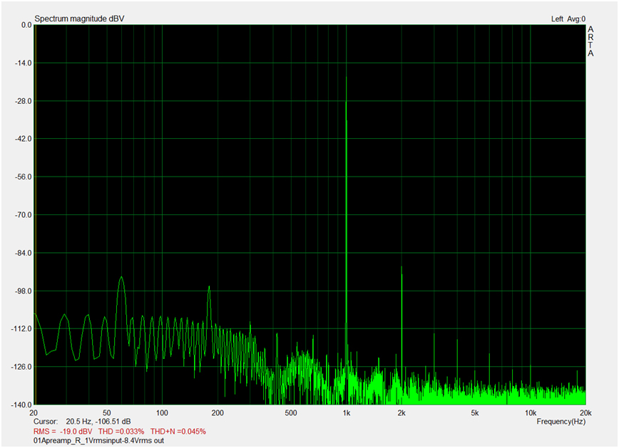 | Channel | Input voltage 1kHz (Vrms) | Output voltage (Vrms) | THD(%) |