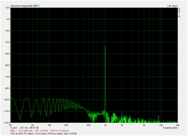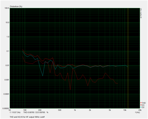 Distortion levels are very low in the 0.0x % with a predominant 2nd harmonic. The frequency response is as flat as possible in the audio band.