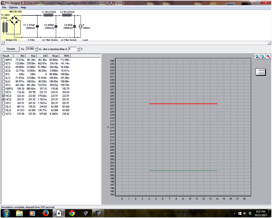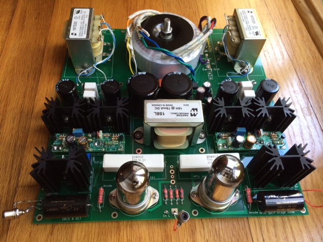 The schematic is simple: The power supply uses 3 transformers ( one of the 187D20 for each filament, and one Antek 50VA 160V for the HT.). Ht supply is filtered by a CLC (470uF-15H-470uF). The raw supply for the filaments uses 1N5822 and CRC 10mF-0.47R-10mF. The Coleman regulators need to be preassembled except the power transistors who are mounted on 2″ Wakefield heatsinks. The 4P1L is biased at about 115V Uak, 35mA and 560mA starved filament. Th headroom in this case is about 7dB. The load for the 4P1L is a cascoded DN2540 CCS. The PCB measures 266mmx274mm. It was much cheaper to order it on 1.6mm thickness and I provided many holes for support. One can use Aluminum stand-offs to make sure that the board stays rigid.