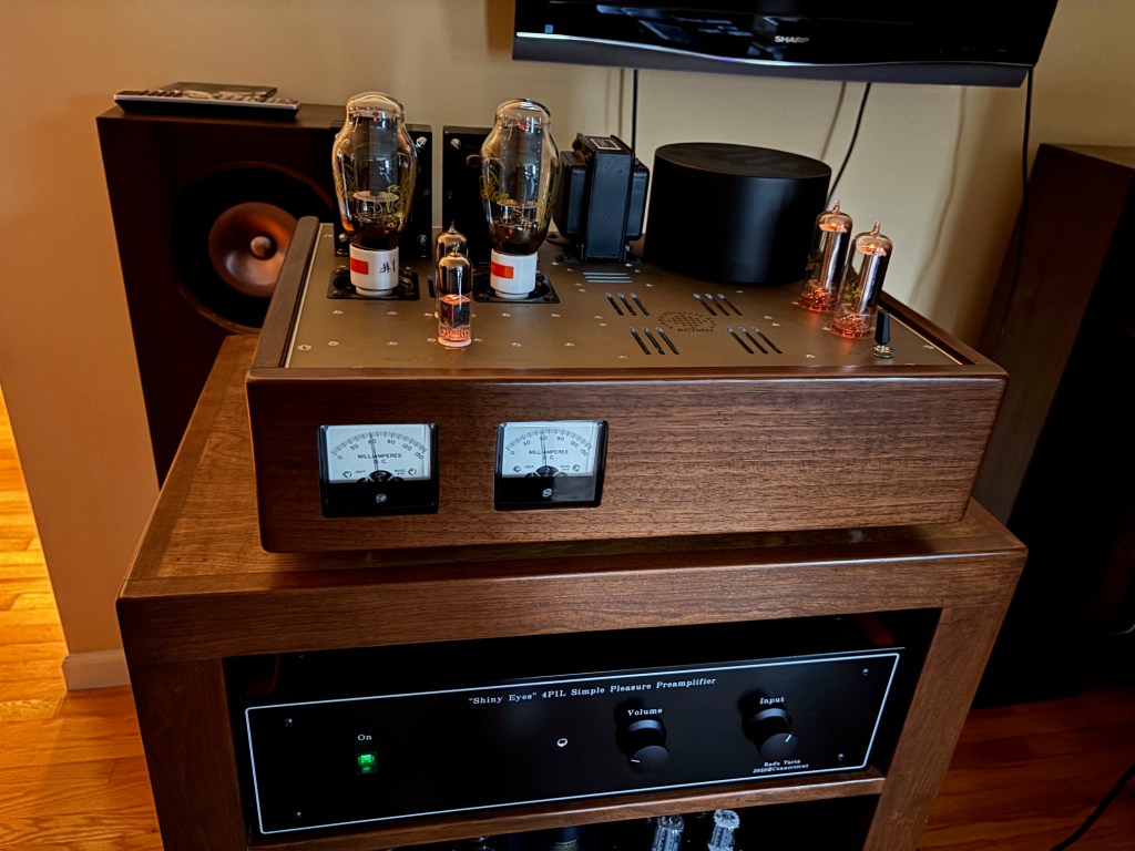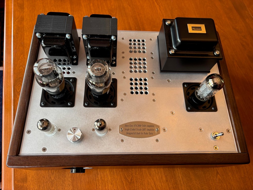 Here is the description of the amp: https://simplepleasuretubeamps.com/shiny-eyes-integrated-dht-45-set-amplifier/.